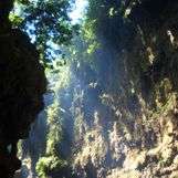 Ein Pflicht−Ausflugsziel in Moped−Nähe ist der Green Canyon. Hier kann man sich mit bis zu 7 Personen ein Boot samt Führer mieten. Der Preis gilt hier pro Boot und bleibt dementsprechend gleich, wenn man auch nur zu zweit fährt. Die Bootsfahrt führt einen Fluss hinauf, der dem „grün“ im Namen schon alle Ehre macht. Mit etwas Glück bekommt man Warane oder kleine Krokodile zu sehen. Wer die Ufer des Flusses schon als wunderbar grün empfand, wird sich wundern, sobald er den Green Canyon erblickt. Zu beiden Seiten des Flusses türmen sich plötzlich Steinwände auf, von denen es stetig runtertröpfelt. An besonders heißen Tagen ist es hier schön kühl und man kann durch (Vorsicht! Sehr glitschiges!) Klettern und Schwimmen viel tiefer in den Canyon eindringen, als die Boote es schaffen. Dieser Canyon ist ein wunderschöner Platz, der die überraschende Vielseitigkeit der indonesischen Natur mal wieder aufs Vortrefflichste unterstreicht.