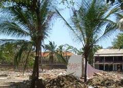 4 Monate nach dem Tsunami sah es noch so in Pangandaran aus, heute stehen auf diesem Brachland wieder Wohnhäuser.